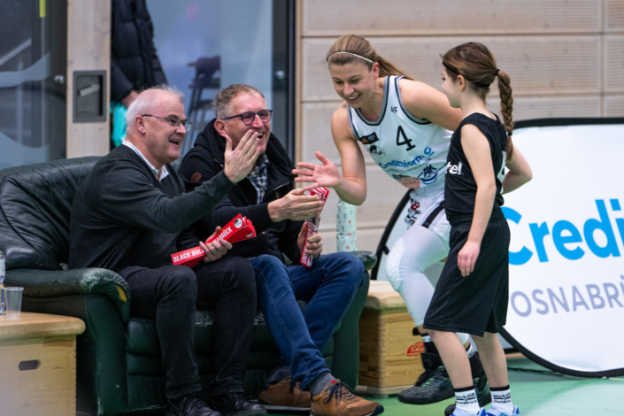 Als sich beide Headcoaches weit vor Spielbeginn freundschaftlich begrüßten, drückten sie übereinstimmend ihre Freude darüber aus, dass ein so knapp vor den Festtagen terminiertes Spiel vor allem dann Spaß mache, wenn es ein Spitzenspiel ist! Und das Prädikat „Spitzenspiel der 2. DBBL Nord“ hatte die Begegnung zwischen dem Tabellenzweiten BBC Osnabrück und dem Vierten Metropol Ladies Herne/Recklinghausen mehr als verdient, spätestens nach dem überraschend deutlichen 70:48-Erfolg der Metropol Ladies beim Tabellenführer in Bochum! Aber auch die Osnabrückerinnen hatten in den vergangenen Spieltagen bewiesen, dass sie auch offensiv Spiele gewinnen können. Zwei Tage vor Weihnachten, zwei Topteams, Glühwein und Kinderpunsch als Dankeschön an die Fans und ein Pausengewinnspiel, bei dem man eines der neuen „Rookiegang“-Shirts des BBC gewinnen konnte – es war alles bereitet für ein echtes Topspiel. Gut 250 Zuschauer wollten sich das nicht entgehen lassen und wurden nicht enttäuscht!