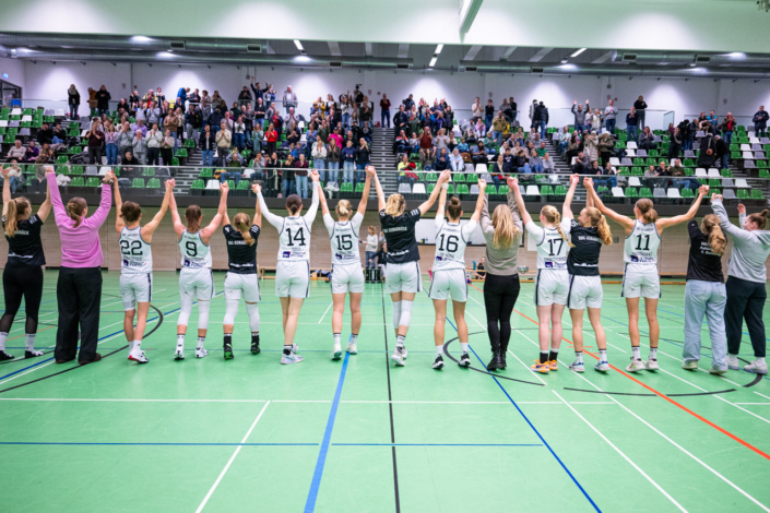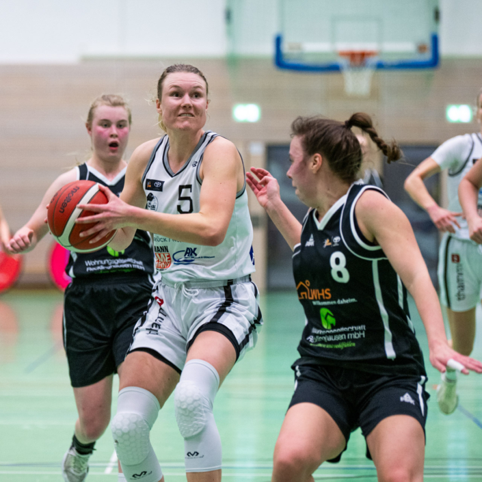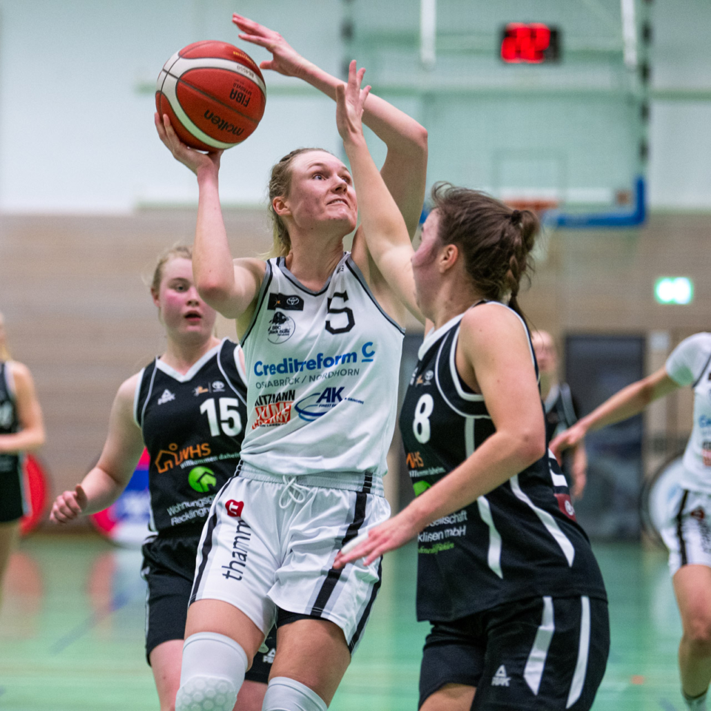10 Siege aus 12 Spielen, die beste Defense der Liga (49 im Schnitt) und mit 69 Punkten im Schnitt inzwischen auch die zweitbeste Offense hinter Chemnitz (73 im Schnitt), das ist die Osnabrücker Bilanz aus der bisherigen Saison 24/25, wobei nicht vergessen werden darf, dass mit der Topscorerin 23/24, Maya Girmann, und Kira Dölle zwei Spielerinnen der letztjährigen Starting Five fehlen und mit Ann-Sophie Ossowski und Tessa Strompen zwei weitere starke Akteurinnen ebenfalls verletzungsbedingt nicht eingesetzt werden können. Alle hoffen darauf, im Jahr 2025 zwischen Januar und Mai wieder auf das Spielfeld zurückkehren zu können!