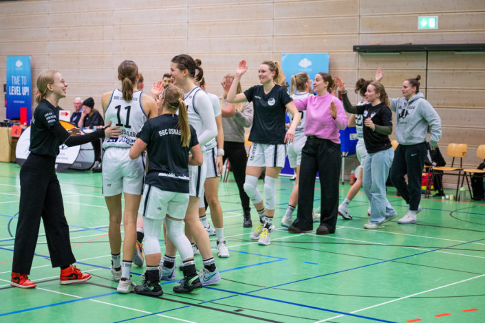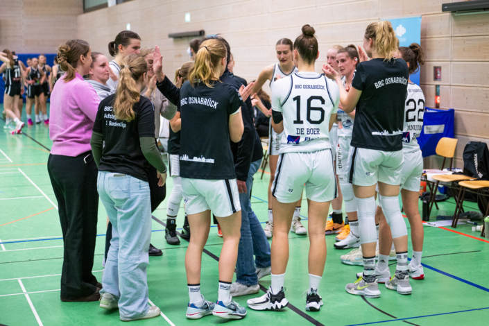 Als das 2. Viertel (18:10) ähnlich verlief wie die ersten zehn Spielminuten gingen die Gastgeberinnen mit einem komfortablen 15-Punkte-Vorsprung in die Kabine. Den BBC in der Saison 24/25 zeichnet im bisherigen Verlauf der Spielzeit aus, dass in der Halbzeitpause an einigen „taktischen Fäden“ gezogen wird und das Team nach der Pause meistens noch die ein oder andere Überraschung aus dem Ärmel zieht, so auch in diesem Spiel: Beim 23:9 im 3. Viertel zeigten die BBCerinnen guten Basketball und trafen hochprozentig! Herne/Recklinghausen kämpfte im 4. Viertel (20:18 für den BBC) um jeden Ball, doch an der hohen Niederlage änderte dies nichts mehr. Die aufmerksame Osnabrücker Defense erschwerte den Gästen nahezu jeden Korbwurf , sodass der 74:43-Sieg deutlicher ausfiel als das Mächteverhältnis auf dem Spielfeld eigentlich war.