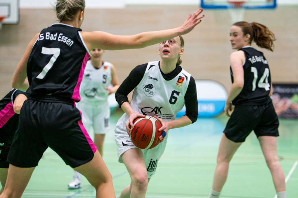 Im zweiten Spiel gegen TUS Bad Essen gab es dann die zweite Niederlage der Saison. Die erste Halbzeit ging mit 17:18 und 11:19 an die Gäste, da es in der Offensive immer wieder nur Ansätze von gab, was das Team in der Lage ist zu spielen. Viel gravierender war die Defensive, in der oftmals die Zuordnung fehlte oder die Helpside zu spät oder auch gar nicht kam. Nach der Halbzeitansprache in der Kabine schien der Wille besser zu verteidigen da zu sein, hatte aber immer wieder Mal den einen oder anderen Aussetzer. Dennoch konnten 7 Punkte aufgeholt werden. Im letzten Viertel gab es dann endlich die richtige Energie in beiden Bereichen des Spiels also sowohl offensiv wie auch defensiv, was zum Ausgleich nach ca. 34 gespielten Minuten führte. Danach folgte ein 8:0 der Gäste aus Bad Essen, die nun Ihre Würfe aus der Distanz trafen. Nun war aber durch das vorher erreichte der Wille da auch diesen Rückstand aufzuholen, so dass man 1:43 Minuten vor Schluss auf 58:60 verkürzen konnte. In der verbleibenden Zeit konnten dann leider nur noch 2 Punkte der Gäste aufgeschrieben werden und führten zur Niederlage mit 4 Punkten. Nun gilt es bis zum nächsten Spiel am 01. Dezember beim Tabellenführer aus Belm an den schwächen zu arbeiten um wieder auf die Erfolgspur zum kommen.