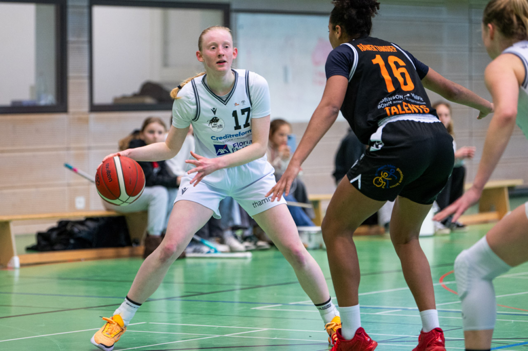 Bei aller Tristesse war es ein Lichtblick, dass Tessa Strompen (8) ihr erstes Heimspiel absolvieren konnte und dass Kira Dölle (2) nach langer Verletzungspause wieder auf das Spielfeld zurückkehrte und erste Spielminuten sammeln konnte. Beide stachen aus einer insgesamt schwachen Mannschaft positiv heraus. Für den BBC spielten: Annemarie Potratz (4), Charlotte Behr, Tessa Strompen (8), Maike Hagedorn (1), Charlotte Kreuzhermes (2), Antonia Kraushaar (16/1), Carlotta Arlt (3/1), Kira Dölle (2), Tonia Dölle (6) und Sarah Nocke (2). Am kommenden Sonntag steht die nächste schwere Aufgabe auf das BBC-Team an, denn in Grünberg wartet die nächste Mannschaft, die alles in die Waagschale werfen wird, um sich noch für die Playoffs zu qualifizieren.