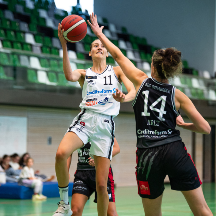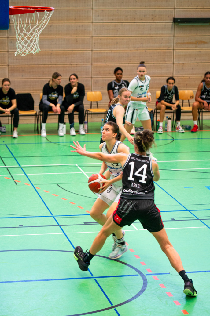 Die verbliebenen 8 Spielerinnen starteten gegen den Erstligisten, der tags zuvor den Zweitligisten Rotenburg/Scheeßel deutlich bezwungen hatte, mit viel Einsatz in der Defense und noch mehr Bewegung in der Offense. Die Luchse schienen etwas überrascht und lagen schnell mit 0:7 hinten, fingen sich dann aber schnell und entschieden das 1. Viertel mit 2 Punkten für sich (15:17). Auch im 2. Viertel spielten die Osnabrückerinnen variabel, erkämpften sich einige Ballgewinne und standen den Gästen in Sachen Tempobasketball in nichts nach! Tonia Dölle, Michelle Müller, Sarah Nocke, Carlotta Arlt, Antonia Kraushaar, Charlotte Kreuzhermes, Charlotte Behr und Annemarie Potratz lagen zur Pause mit nur 5 Punkten zurück und spielten in weiten Phasen der 2. Halbzeit auch auf Augenhöhe mit dem letztjährigen DBBL-Halbfinalisten. Am Ende mussten sich die BBC-Damen mit 58:72 geschlagen geben, waren mit sich und dem Stand der Vorbereitung aber sehr zufrieden. Auch von den Zuschauern kam viel positives Feedback! Ein insgesamt gelungener Testspielabschluss!